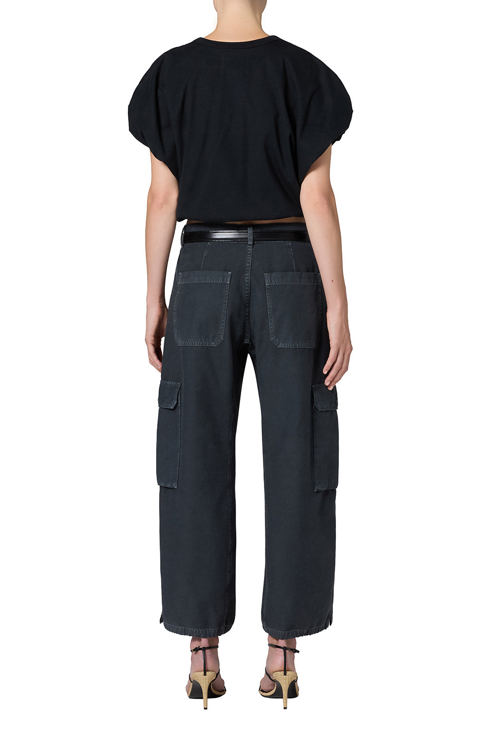 Looks like: Washed black utility pant with side cargo pockets and twisted seam detail