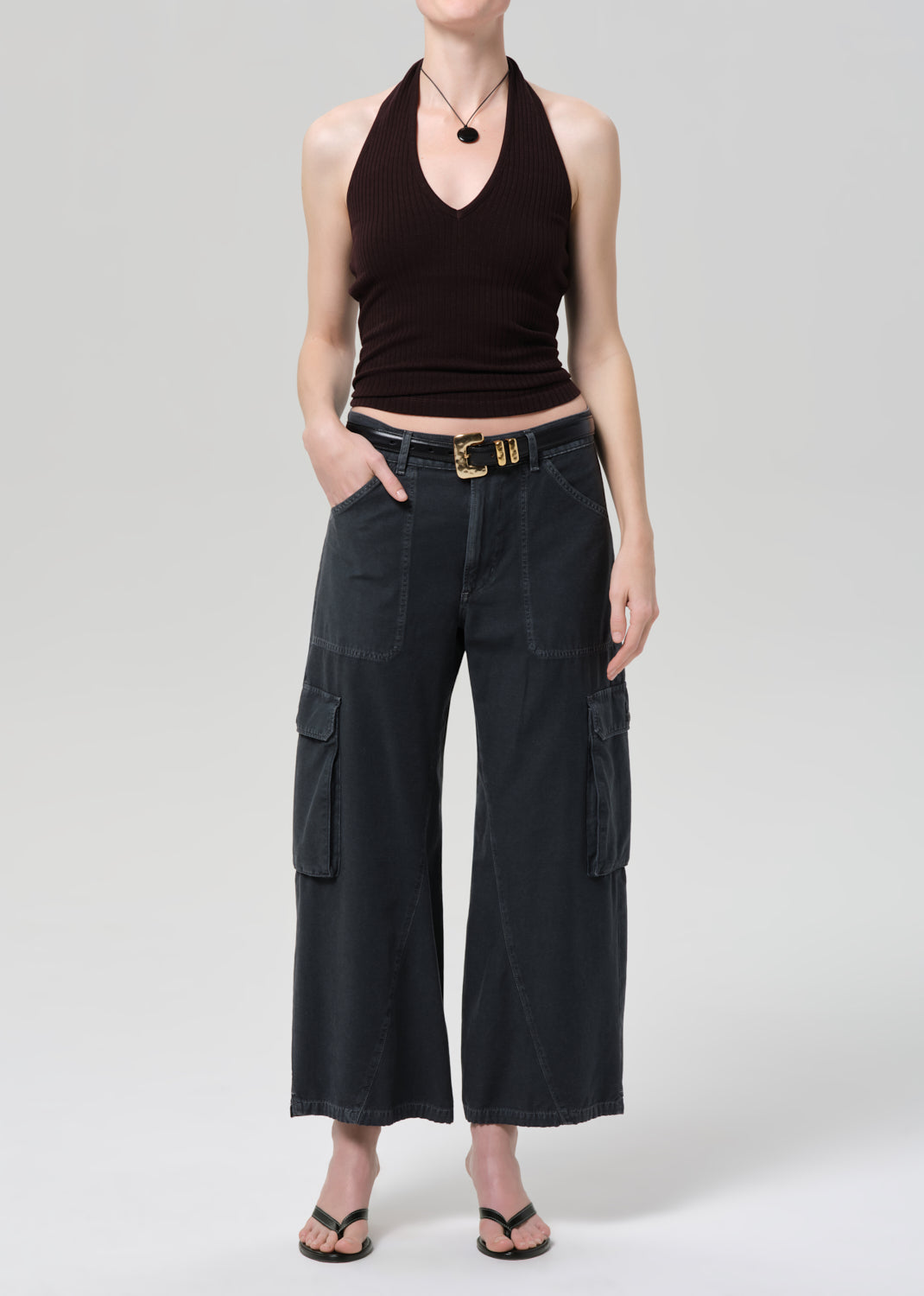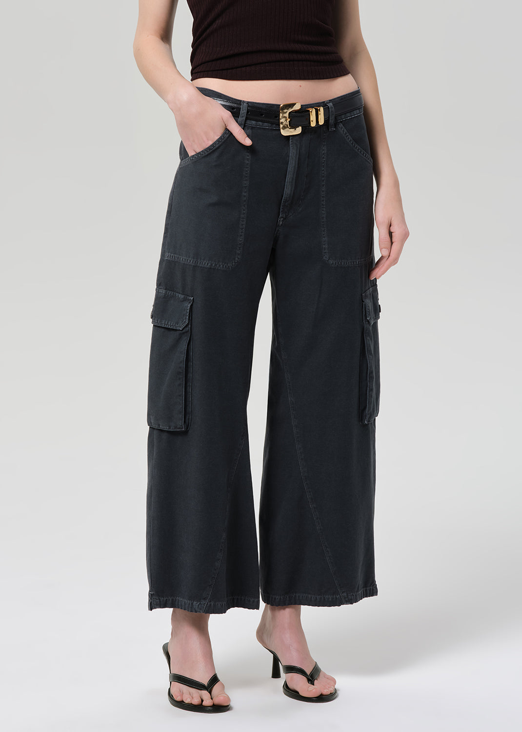 The Citizens Of Humanity Thassos Twisted Seam Utility Pant in Washed Black. The Thassos Twisted Seam Utility Pant redefines classic workwear through a modern, fashion forward lens. Designed with a distinctive twisted seam and functional side cargo pockets, this utility pant delivers structure, dimension, and everyday versatility. The washed black finish adds a worn in, lived in appeal that pairs effortlessly with elevated wardrobe staples or relaxed off duty styling.