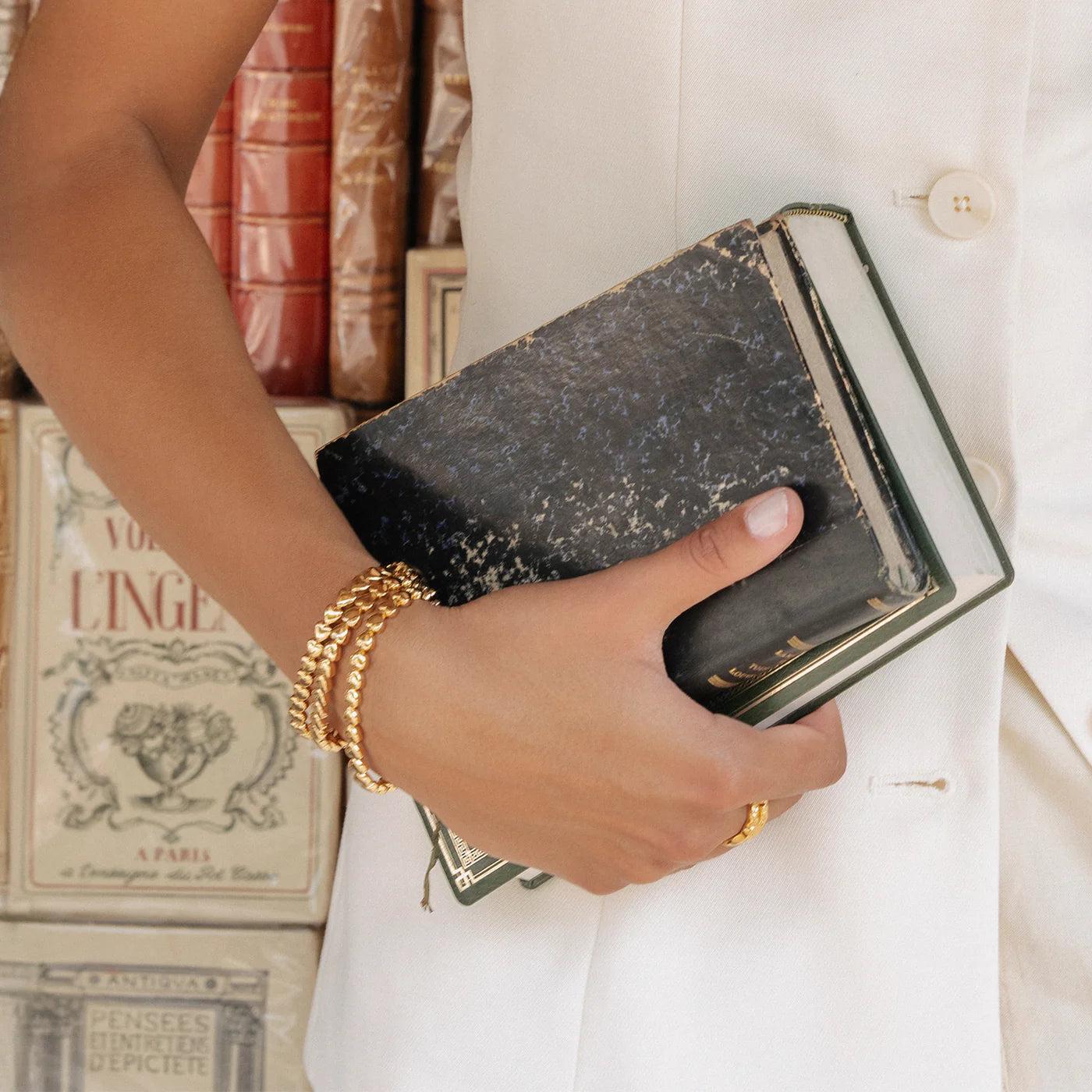 Fairley Golden Heart Tennis Bracelet. A modern twist on the classic tennis bracelet, the Golden Heart Tennis Bracelet features a delicate row of gold-plated hearts, each symbolising love, strength, and connection. Perfectly balanced between timeless sophistication and everyday charm, it’s designed to be worn solo for a subtle statement or layered for added sparkle.
