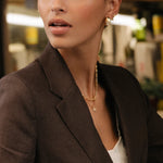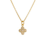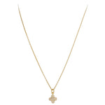 Fairley Moroccan Spark Necklace. Inspired by the ornate beauty of Moroccan design and the timeless symbol of luck, the Moroccan Spark Necklace features a four delicate four-leaf clover encrusted with shimmering crystals for a subtle, radiant glow. Suspended on a fine chain, this necklace is a striking blend of old-world charm and modern sparkle — perfect for layering or wearing as a statement of fortune and elegance.