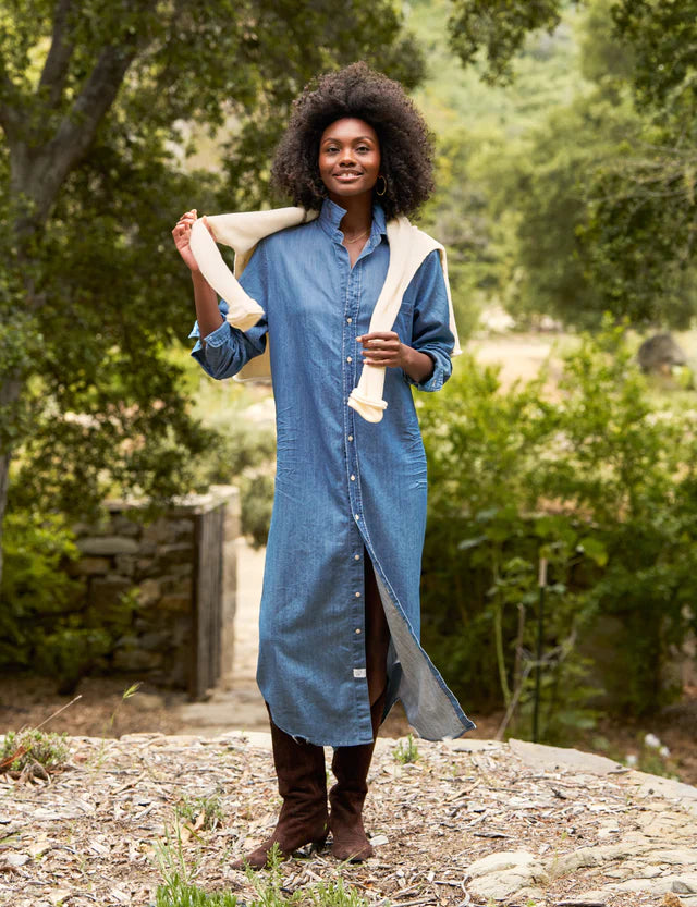 Frank and Eileen Rory Maxi Shirtdress in Vintage Stonewashed Indigo
