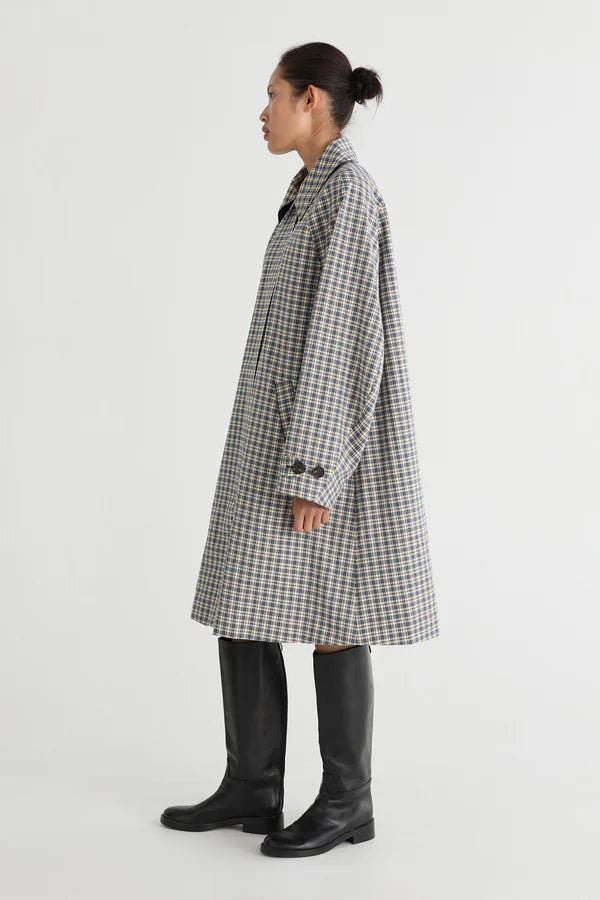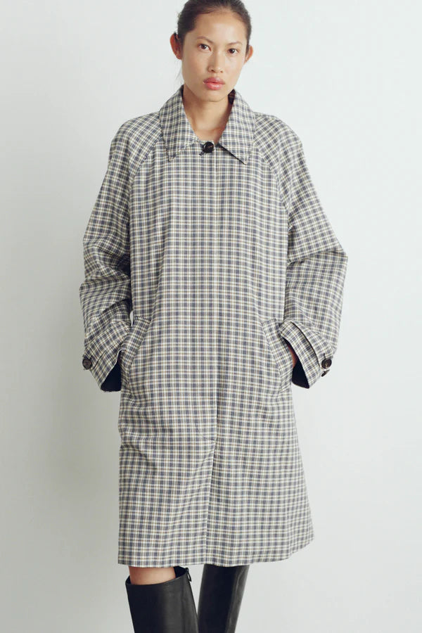 A clean-lined car coat. Crafted in a classic check pattern, refined through modern design details.