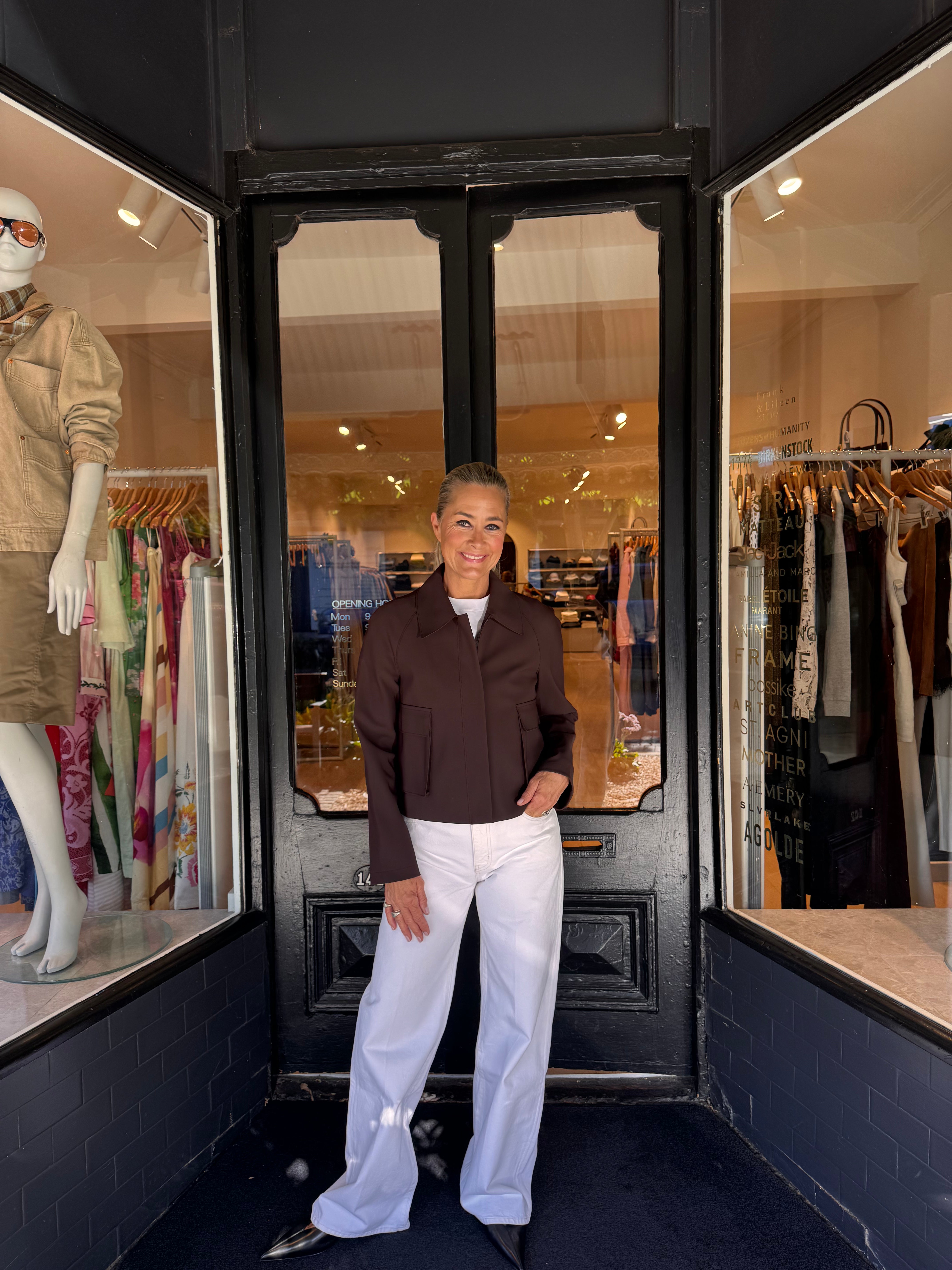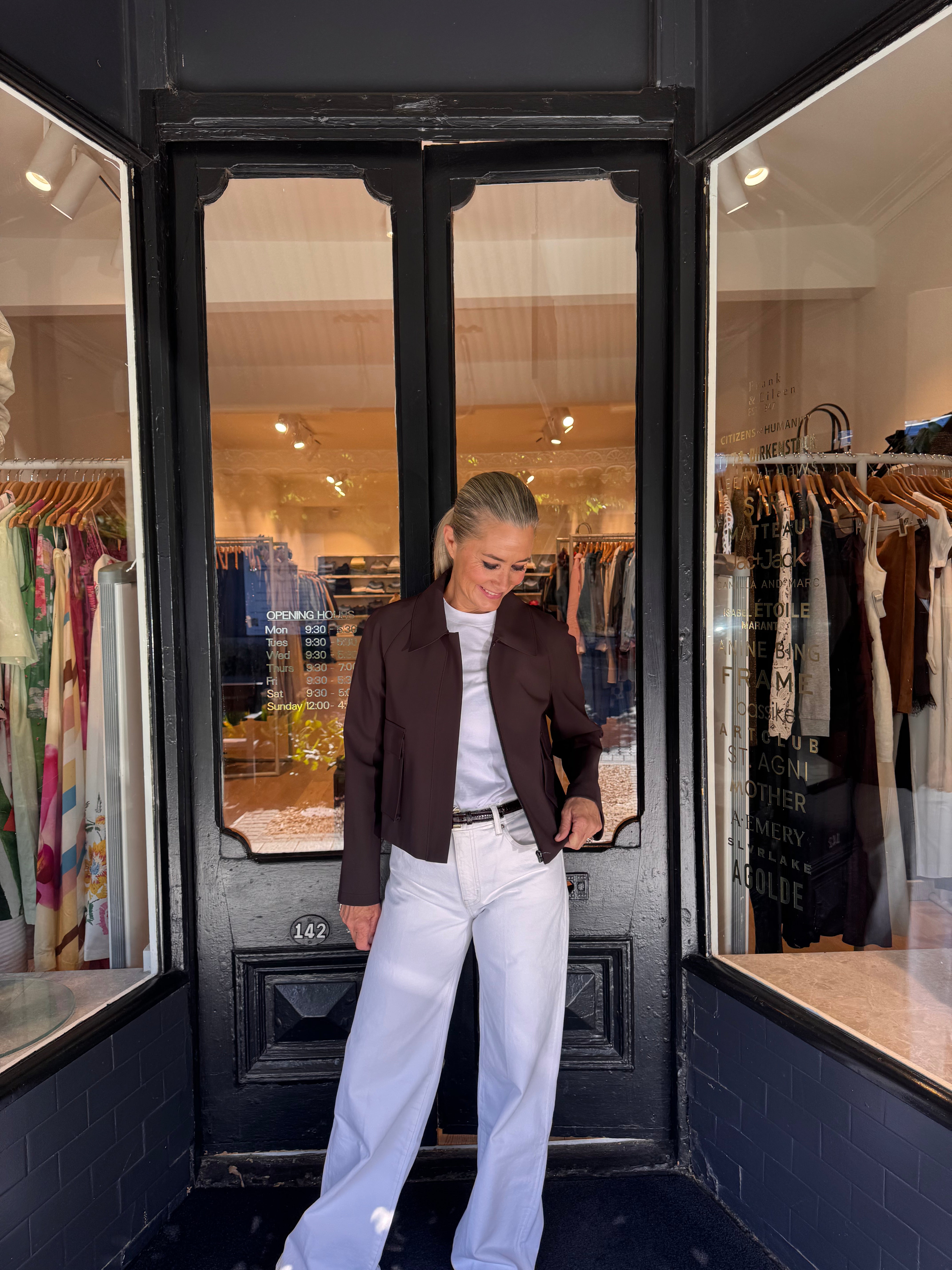 Harris Wharf Cropped Raglan Jacket in Dark Brown Scuba