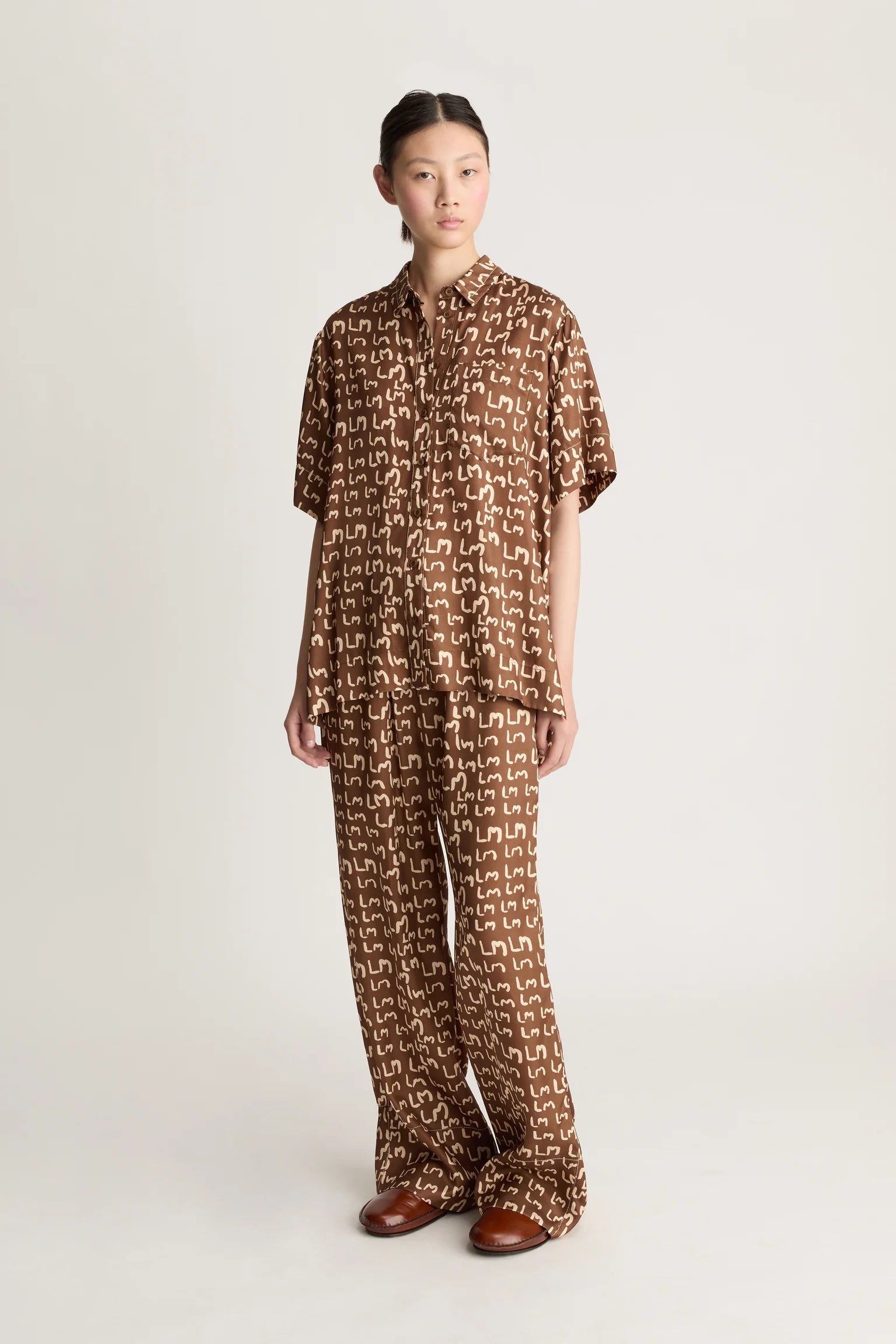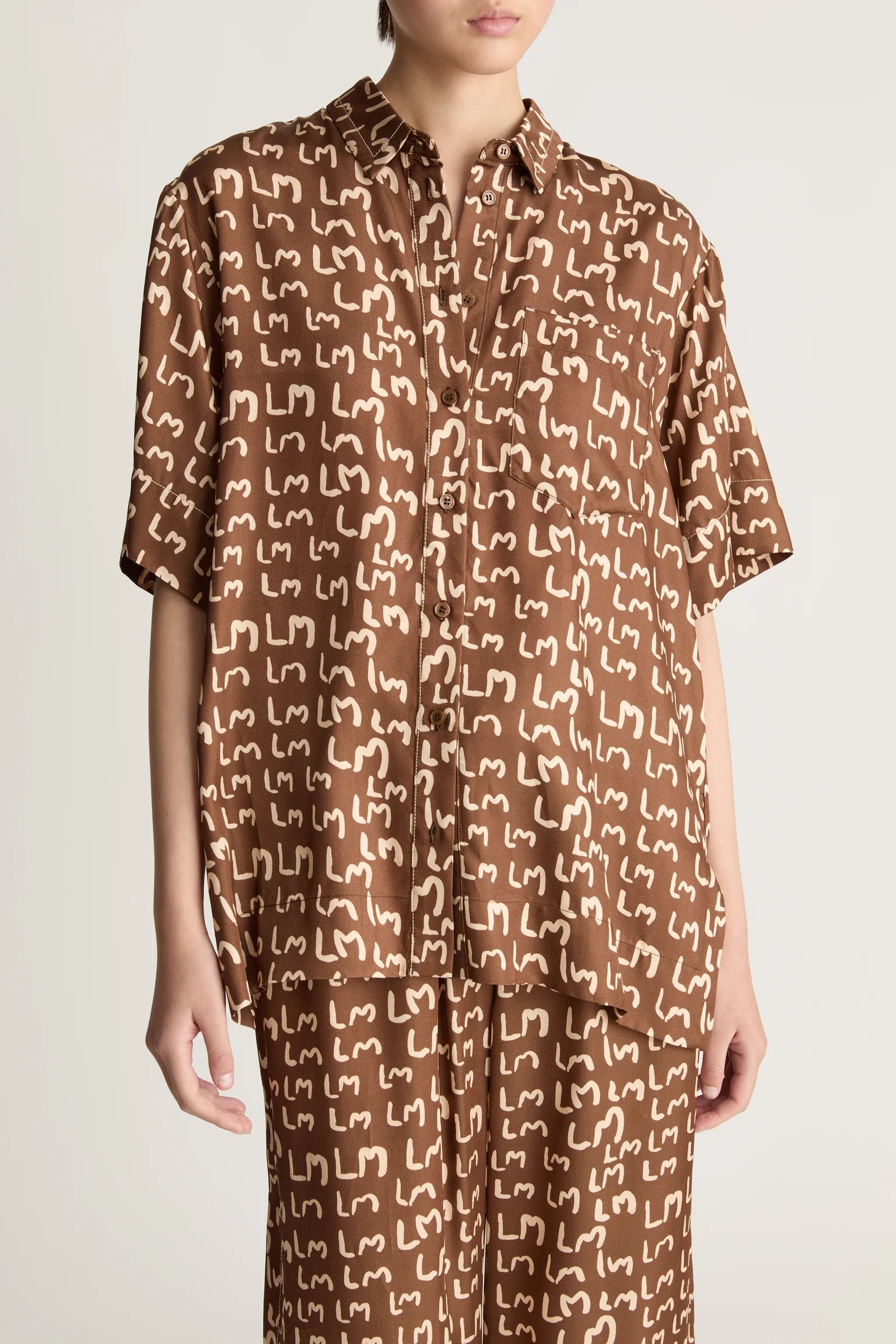 Lee Mathews Monogram Short Sleeve Shirt in Walnut.