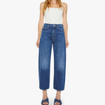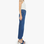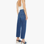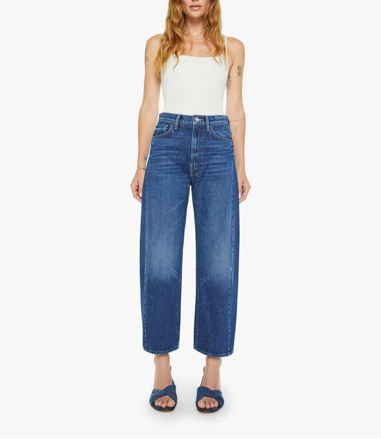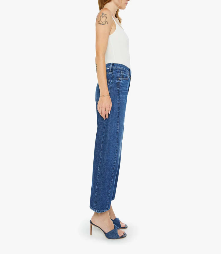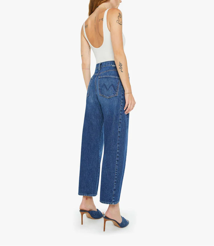 Mother The Half Pipe Ankle in Did You Bring Me Anything. High hopes. A super high-waisted jean with a wide, curved leg, an ankle-length inseam and a clean hem. Made from SUPERIOR denim, Did You Bring Me Anything? is a dark blue wash with whiskering and fading at the knees.