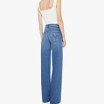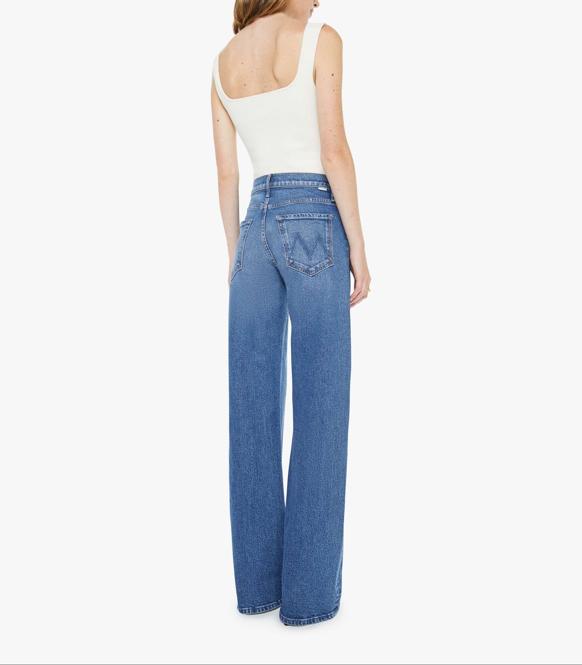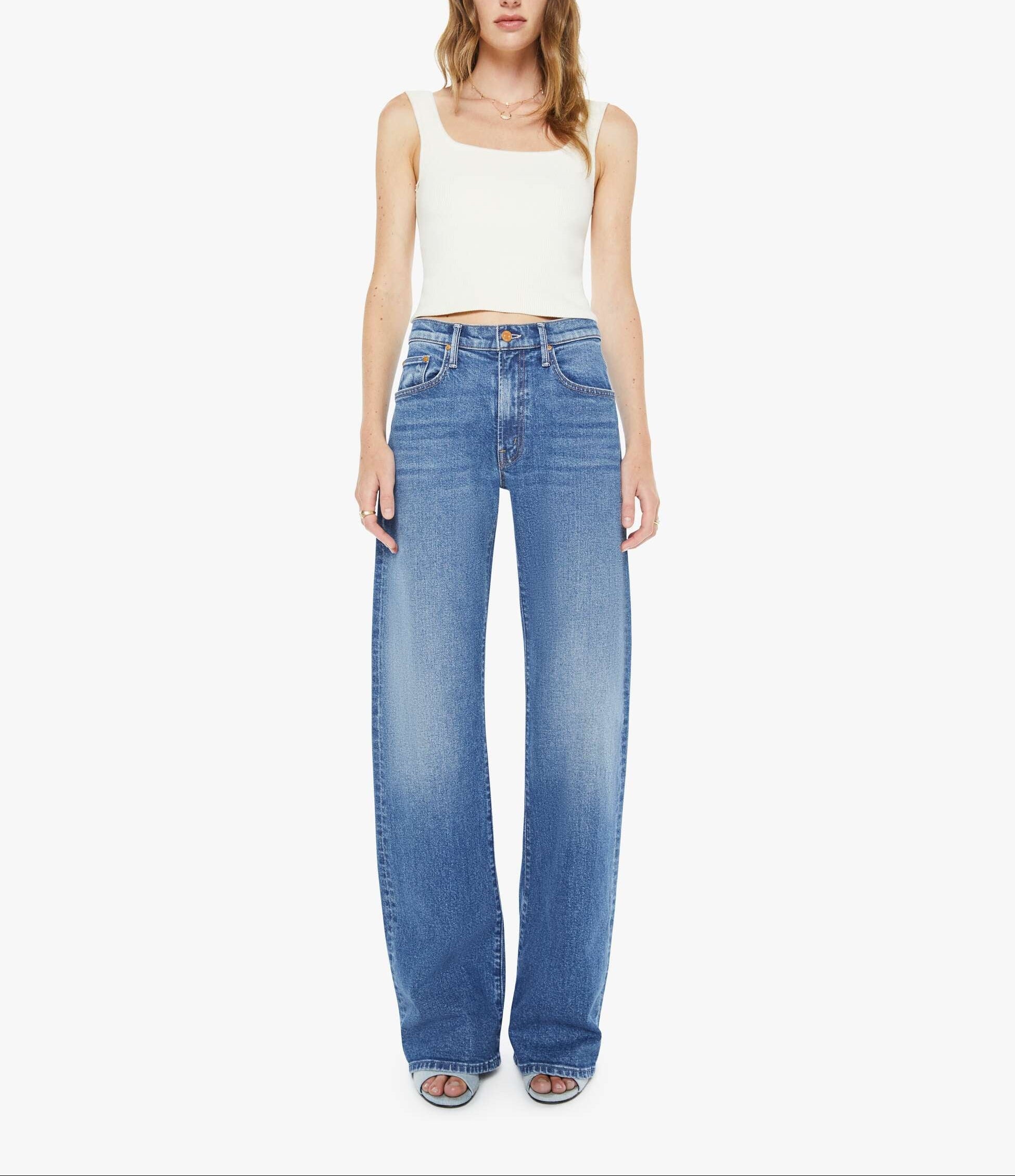 Mother The Mid Rise Lasso Heel in Knick Knack Paddy Whack. Wide-leg pants with a zip fly, mid rise and a long 34-inch inseam with a clean hem. Cut from denim with a touch of stretch, Knick Knack Paddy Whack is a mid-blue with subtle whiskering and fading.