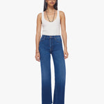 Stay groovy. This iconic high-waisted wide leg fit has a button fly, 31-inch inseam and clean hem. Cut from a recycled denim blend with a touch of stretch, Groovy is a dark-blue wash with super subtle fading.