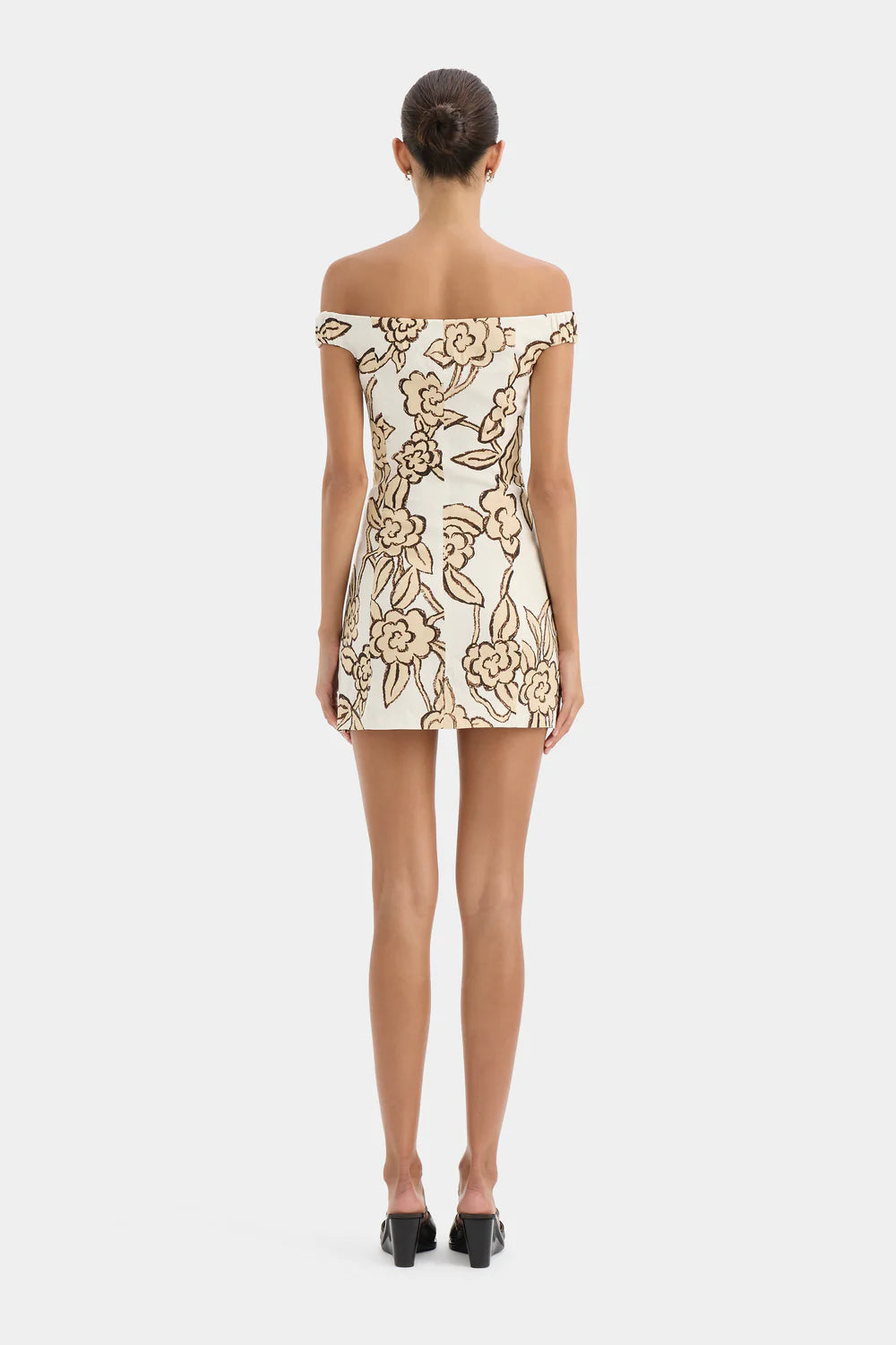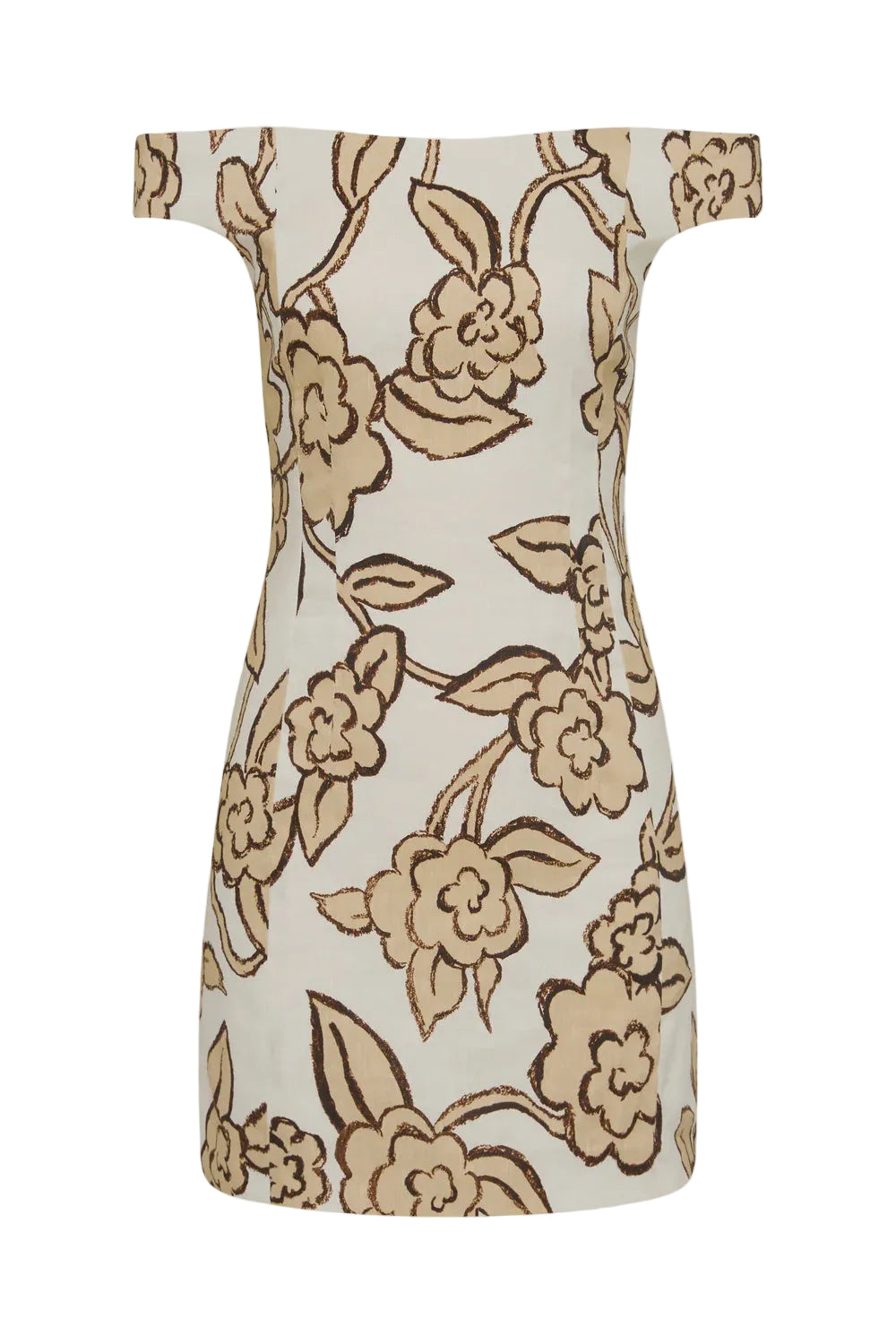 Sir Elodie Off Shoulder Mini Dress in Patale. The Elodie Off Shoulder Mini Dress in Patale is an effortless summer silhouette, crafted from lightweight linen-viscose blend with slight stretch. It features a SIR. exclusive hand-drawn floral print inspired by Parisian Art Deco motifs, paneling through the body and ruched sleeves with elastic.