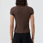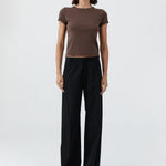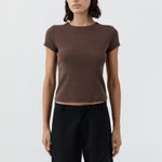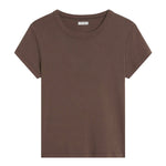 St Agni Organic Cotton Baby Tee in Fudge. A forever favourite silhouette, the Organic Cotton Baby Tee features a classic crewneck cropped silhouette, short-sleeve design and fitted shape. Easy for everyday wear and crafted from 100% organic cotton for a super soft hand feel.